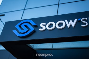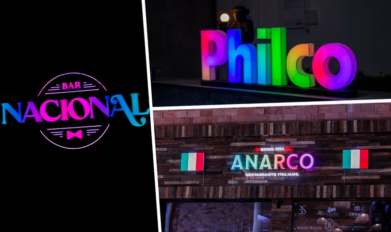 Iluminação em cor fixa, ideal para marcas que já possuem identidade visual definida. Proporciona visual elegante, excelente leitura noturna e acabamento profissional para fachadas e ambientes internos.