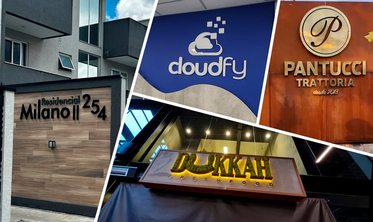 A letra caixa 3D é um tipo de comunicação visual em alto relevo, produzida em materiais como acrílico, PVC, inox ou ACM. Pode ser iluminada ou não, sendo muito utilizada em fachadas comerciais e ambientes internos para destacar marcas com sofisticação e visibilidade.